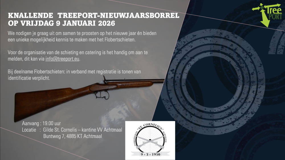 Voor de derde maal op rij, organiseren we opnieuw een Nieuwjaarsborrel voor onze leden, dit keer met een unieke kans om je schietvaardigheid te testen! Voor de organisatie en catering is aanmelden handig, dit mag via info@treeport.eu. We zien je graag op vrijdag 9 januari 2026!