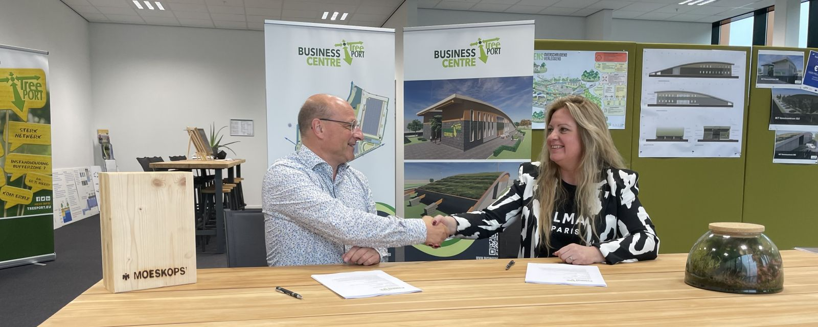 Tijdens de ondertekening door Marcel Oerlemans namens Moeskops’ Bouwbedrijf BV en Chantal van Kuyck namens Treeport BCT Partners BV werd al gemeld dat het reden genoeg is voor een speciaal moment. Dat zal plaatsvinden tijdens de 33e editie van vakbeurs GrootGroenPlus van 4 t/m 6 oktober, dé beurs voor professionals in het groen, waarbij de hele sector aanwezig is. Meer informatie over dit moment van samenkomst volgt binnenkort.